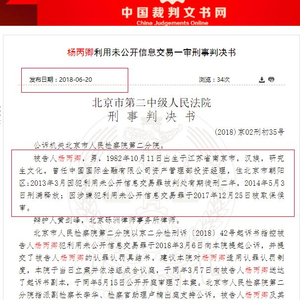 早在2013年,作为券商资管业务的第一起“老鼠仓”,杨丙卿案就曾轰动一时。案发后,杨丙卿被判处有期徒刑2年,并于2014年5月刑满释放。没想到重获自由四年后,杨丙卿于日前再次因“老鼠仓”案被法院判刑。