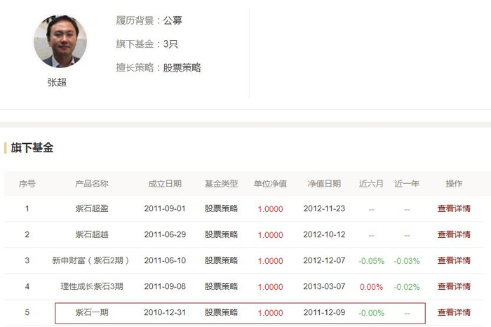 基金君注意到,张超与杨丙卿互相推荐股票的时间,正好是张超管理的私募产品发行的时候。公开信息显示,2010年12月31日,紫石投资正式成立第一只阳光私募产品“紫石一期”,规模1.5亿元,张超本人担任管理人。