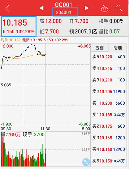 对了,上交所跟深交所的门槛是不一样的。上交所是10万块钱起步价,深交所良心一下,1000块钱起步。加入你账户钱不够玩不了204001,那就试试深交所的131810。