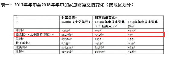 日前,瑞士信贷最新发布的《2018全球财富报告》显示,截至2018年年中的一年,全球财富总值增长14万亿美元,达到317万亿美元,增幅约为4.6%。