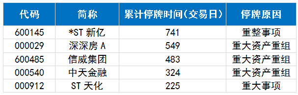 A股当前停牌时长TOP5
