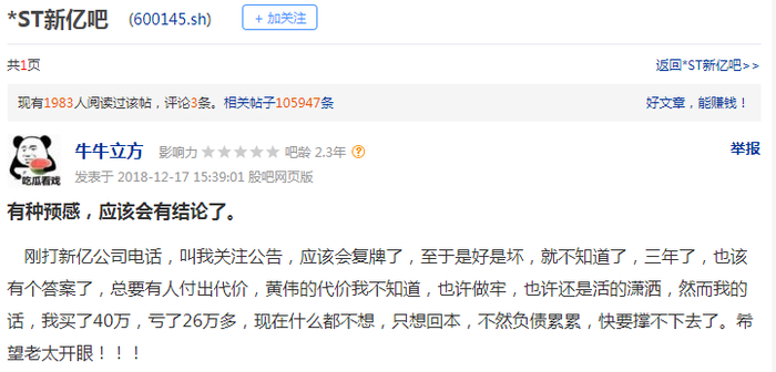 *ST新亿股吧截图