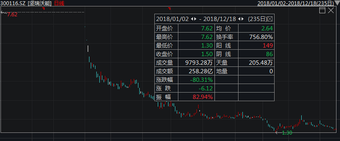 坚瑞沃能股价走势 2018/1/2-2018/12/18
