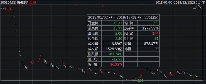 乐视网股价走势 2018/1/2-2018/12/18