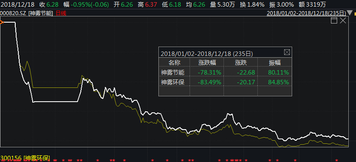 今年以来,神雾节能下跌78.31%,而神雾环保的跌幅更是达到83.49%。