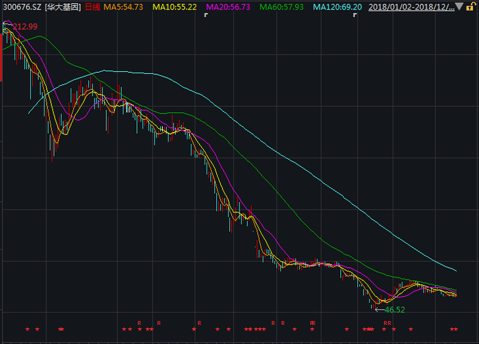 华大基因股价走势 2018/1/2-2018/12/18