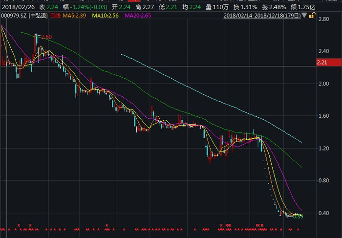2018年A股十大“坑王”:中弘股份1元退市 年度跌幅王