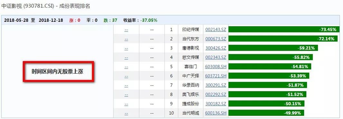 更糟心的是,中证影视指数37只成分股全军覆没,没有一只上涨。