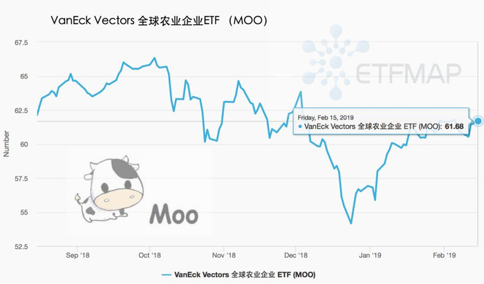 我们来看看这样一个例子,VanEck Vectors农业企业ETF的代码是“Moo”(注:哞~)。自2007年推出以来,它已经吸引了7.642亿美元的投资。