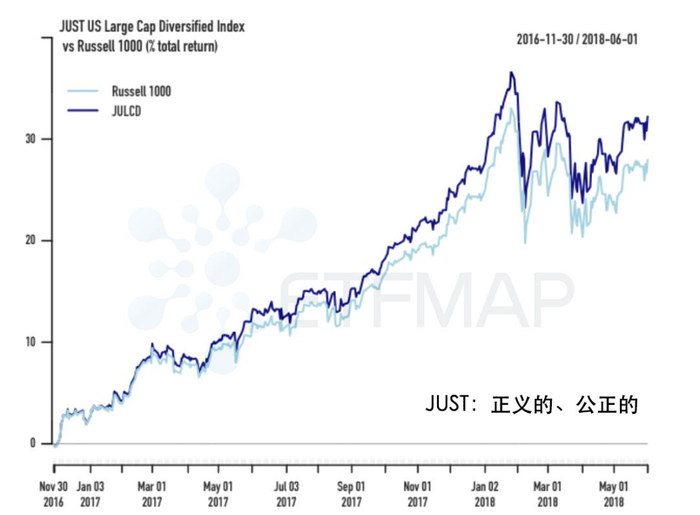 JUST:亿万富翁保罗·都铎·琼斯(Paul Tudor Jones)是非营利组织Just Capital的幕后推手,该组织采用了一种新颖的选股方法——先调研美国公众们最关心的事件,然后利用这些信息来帮助挑选公司。最近,一些顶端的议题包括工人的公平报酬,客户隐私,合理成本和产品质量等等。这支ETF自2016年推出以来,表现优于基准罗素1000(Russell 1000)。