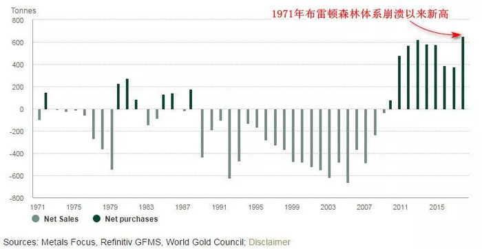 从绝对量来讲,这是1971年布雷顿森林体系崩溃以来,各国央行购买黄金最多的一年。