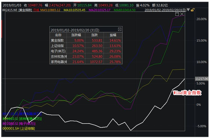 Wind黄金指数、申万热门板块走势图