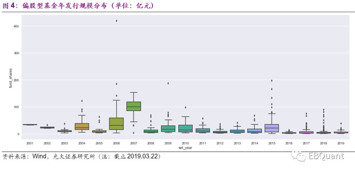 本文仍以偏股型基金为主要研究对象,通过描述性统计的方式梳理了不同类别基金发行规模、存量规模的分布特征,以及其规模与基金业绩之间的关系,我们得到以下几点结论: