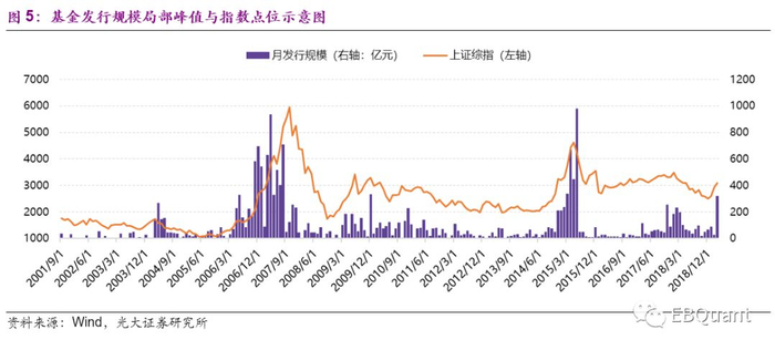 1、偏股型基金发行规模增速放缓,受股票市场行情影响显著,发行规模的高峰往往伴随着股市见顶;