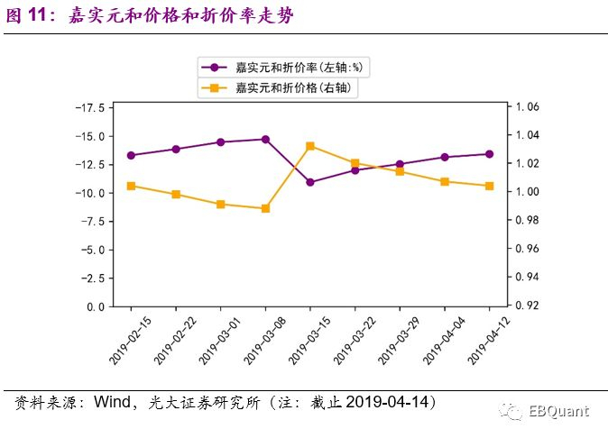 本周嘉实元和价格连续四周回调,折价率持续上升。嘉实元和基金自2019年2月以来,价格波动较大,本周价格持续降低;同时,其折价率持续上升,截止本周最后一个交易日其折价率达13.42%。