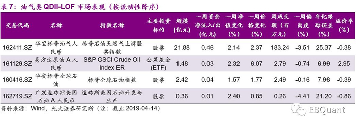 油气类QDII-LOF市场表现:本周油气类LOF基金净值大幅上涨。本周ICE布油、INE原油和NYMEX原油均表现喜人,四只油气类LOF基金净值涨幅均超1.5%,其中广发道琼斯美国石油A人民币、易方达原油A人民币与华宝标普油气人民币涨幅超2%,华安标普全球石油涨幅1.57%。华宝标普油气人民币表现最为活跃,远超其他三只基金,单周成交额1.83亿元。