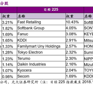 日经225指数:日经225指数最早于1950年由《日本经济新闻》社编制,根据东京证券交易所第一市场上市的225家公司的股票算出修正平均股价,以代表股票市场及日本经济的发展。