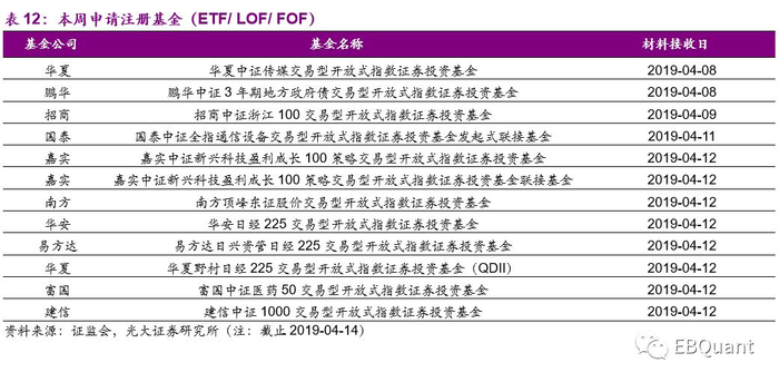 本周12只创新类基金申请注册:华夏中证传媒ETF、鹏华中证3年期地方政府债ETF、招商中证浙江100ETF、国泰中证全指通信设备ETF、嘉实中证新兴科技盈利成长100策略ETF、嘉实中证新兴科技盈利成长100策略ETF联接、南方顶峰东证股价ETF、华安日经225ETF、易方达日兴资管日经225ETF、华夏野村日经225、富国中证医药50ETF、建信中证1000ETF共12只基金陆续申报证监会。