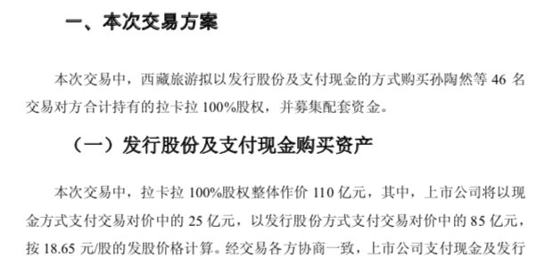 拉卡拉的上市之路也颇多坎坷。2013年拉卡拉本计划在海外上市,但考虑到业务集中在国内,便转道A股。2016年2月5日,拉卡拉欲借道西藏旅游曲线上市,当时西藏旅游发布重大资产重组方案:拟作价110亿元收购拉卡拉100%股权。