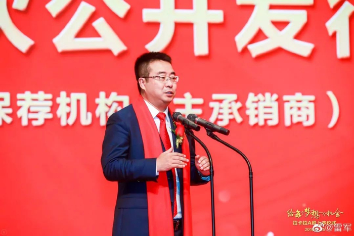 2005年,雷军作为天使投资人曾向拉卡拉投出25万元。招股书显示,目前雷军持有拉卡拉407.52万股,IPO前持股比例1.13%,发行后持股比例1.02%。