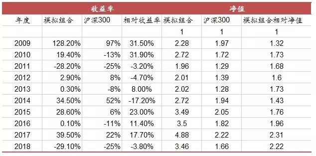 于是,中泰证券建立了一个模拟组合——选取过往三年ROE均高于20%且PE小于过去三年ROE均值的公司,等权配置,每年初调仓。