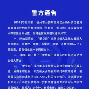 此外,自5月13日起,禁止“爱贷网”借款人以任何形式兑付出借人资金。与此同时,警方也在呼吁真实借款人必须立即履行还款义务,逾期未还款者,公安机关会同有关部门将依法追缴。