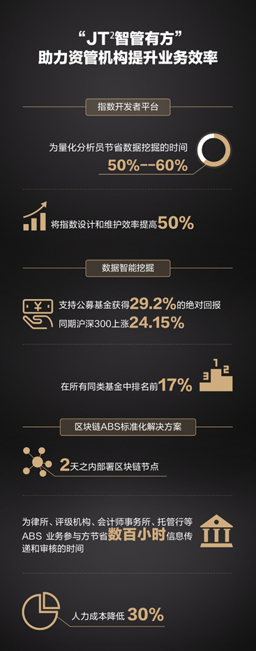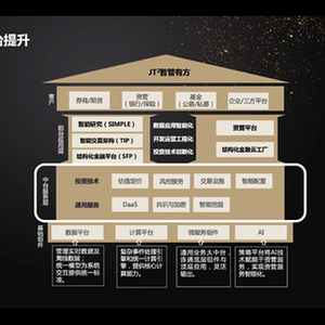 “当机构更多聚焦于资管业务本质,数字科技将越发体现出其价值。“徐叶润表示,当前,资管市场的差异性竞争优势已经从“价格、速度、用户触达”,转向了“定制性、一站式服务和生态建设”。JT²的此次升级是为了适应机构在不同场景中灵活需求。