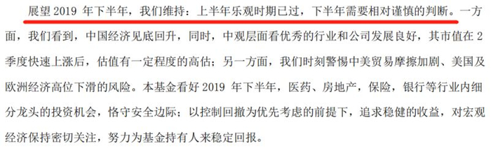农银汇理工业4.0更是在二季报中直言:展望2019年下半年,上半年乐观时期已过,下半年需要相对谨慎。