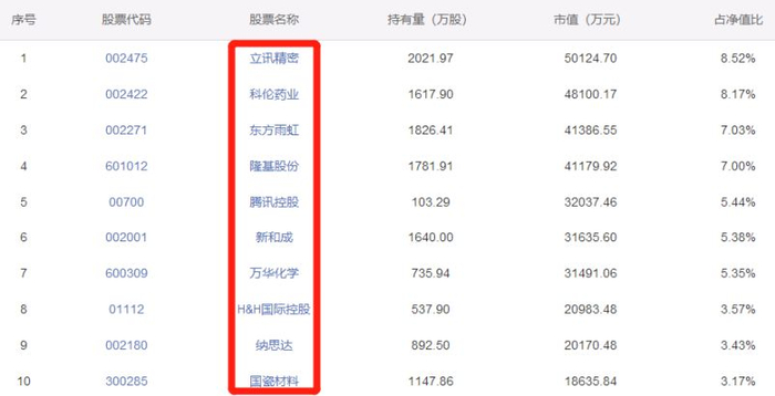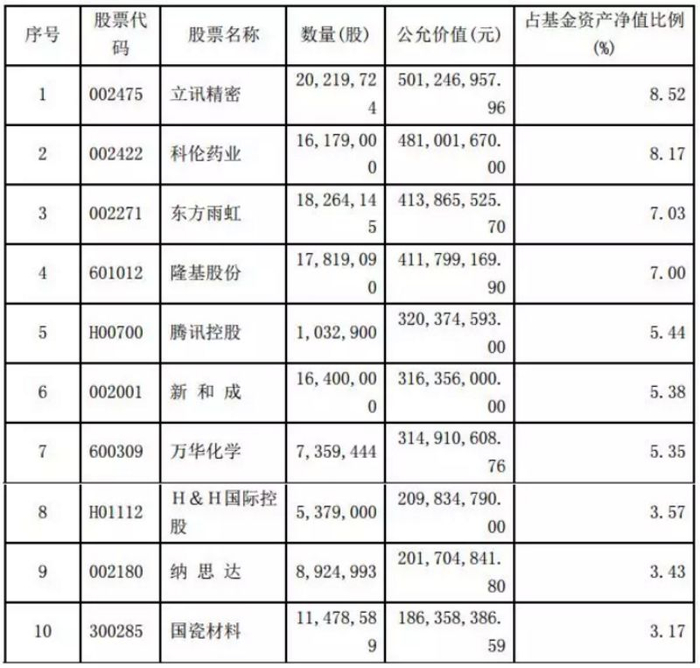 明星基金经理持仓:9年4倍的傅鹏博第一重仓立讯精密