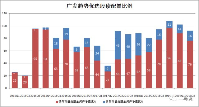 该基金股票持仓范围是0%–95%,采用“长期持有+择时调仓”的策略。坚持价值投资,精选优质并且估值合理的蓝筹股,长期持有,持仓基本控制在0%-15%之间。一旦有发生系统性风险的可能,便会果断降低股票仓位。比如2018年四季度末股票持仓将至6%,2019年一季度末股票持仓提升至12%,持仓比例调整比较频繁。
