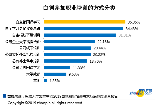 2019白领调查:超3成首选线上培训 金融人士看重人脉