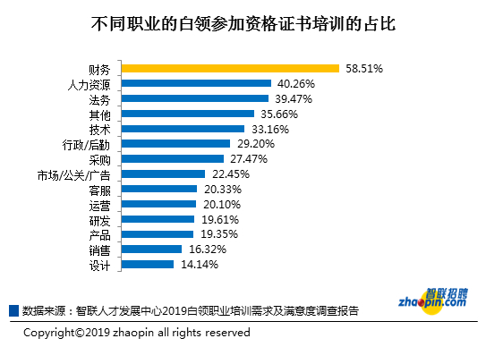 设计/研发岗位更注重专业技能的提升,财务/人力资源等岗位更需要资格证书