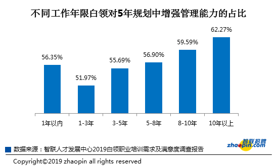 对于未来5年职业发展规划,超六成白领最渴望的是加薪,工作十年以上更渴求增强管理能力