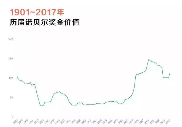 另一方面诺贝尔基金会会根据当年的具体情况,调整资金的金额,而如果遇上通货膨胀,同样的钱价值差距可就不一样了。