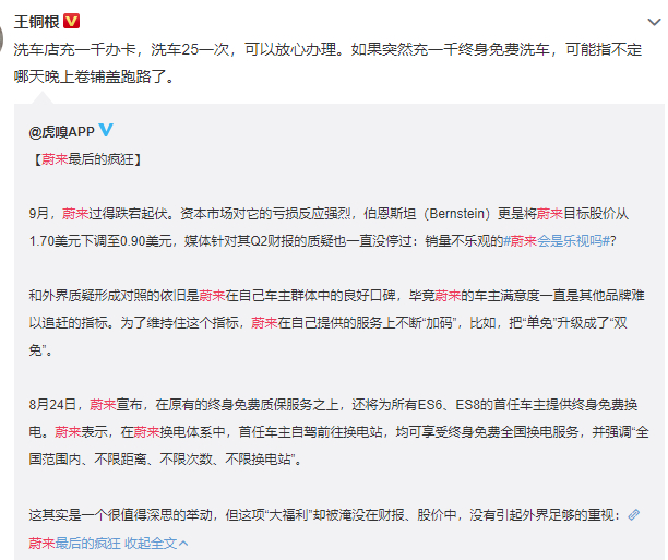 伯恩斯坦的分析师甚至在一份报告中指出,蔚来汽车的现金恐怕将在数周之内耗尽。