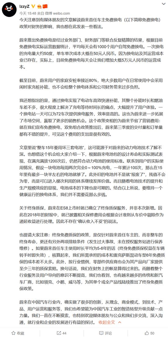 媒体质疑,蔚来免费维修和免费换电两项目服务成本无法估量,就算期限约为15年,在财务上也属于“不可控”,蔚来还有钱去提供这些服务吗?