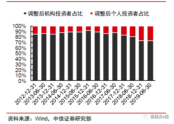 持有人结构上,嘉实沪深300ETF的机构投资者主要来自ETF联接基金,根据2019年中报数据测算,调整后的ETF持有人结构中,机构持有占比已达53%。