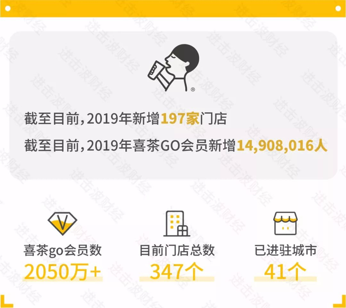 截至目前,2019年喜茶GO会员新增14,908,016人;总数已超过2050万。