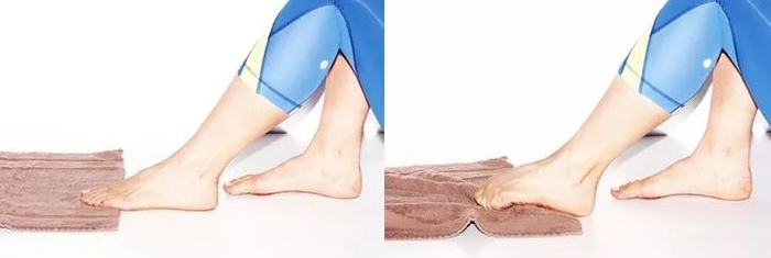 将一块毛巾放在地面上(也可改抓弹珠),患脚平放于毛巾上,脚后跟着地,用脚趾不断地抓住毛巾,然后放开;每组10-20次。