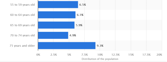 但是,法国老龄化已经很严重。目前,法国65岁及以上老人有约1400万,占总人口比例的近20%。