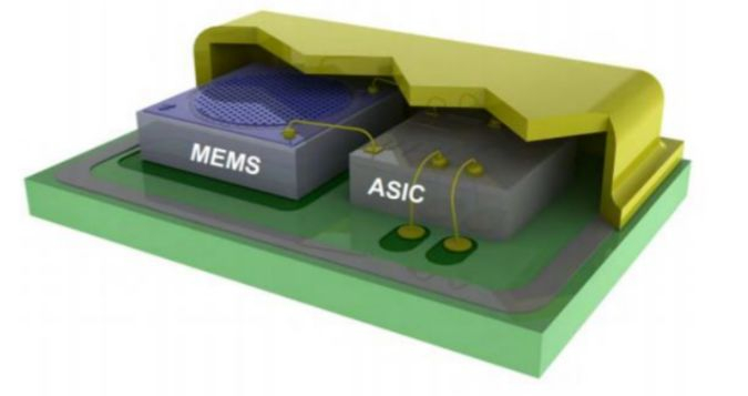 图:MEMS麦克风结构由MEMS与ASIC两部分组成