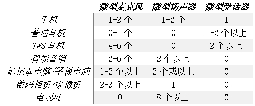 扬声器/受话器是消费电子的标准配置,单机使用量呈上升趋势。包括手机、笔记本电脑、耳机在内的消费电子产品,基本都配置有麦克风、扬声器或受话器,智能音箱等新兴应用搭载量更高。以手机为例,目前正发生从单扬声器到双扬声器配置的趋势,如苹果从iPhone 7开始采用双扬声器设计,安卓高端机型也已经逐步普及。随着单机使用量的上升,微型扬声器市场已经迎来较大的增量。