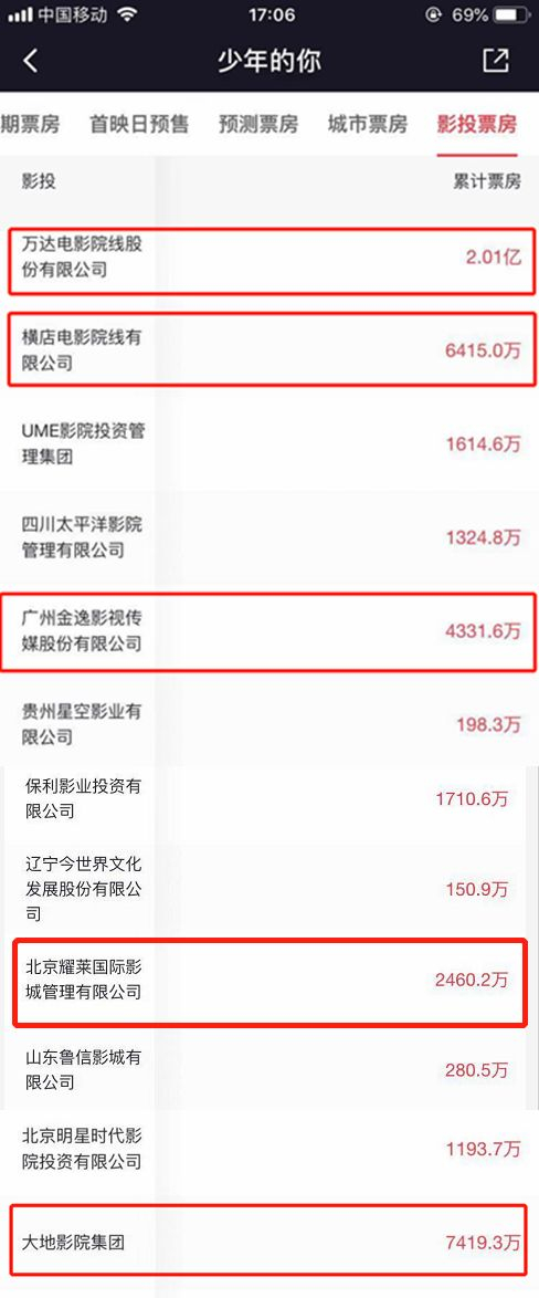 另一方面,在《少年的你》背后,还有4家上市公司,分别为港股公司阿里影业和猫眼娱乐,A股公司金逸影视和横店影视。