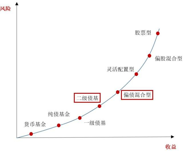 偏债混合型基金则是将不低于50%的资产投资于债券,股票资产的投资比例最高不超过45%。与二级债基相比,提高了股票的配置比例。