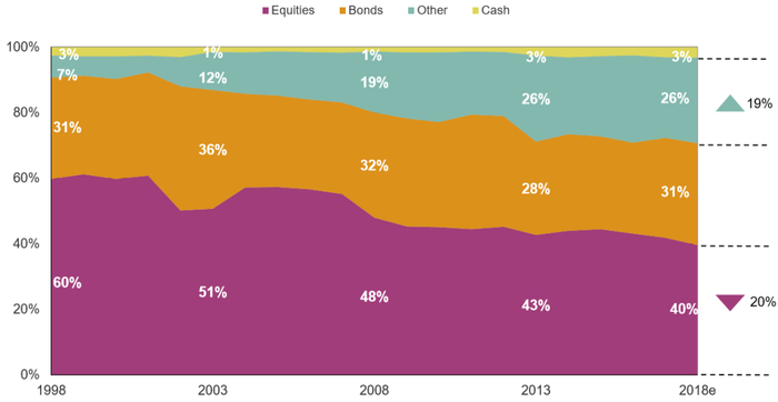 2013年 -2018年 | 逐步下调固定收益资产的配置目标至30% |