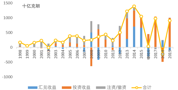 GPFG规模增长来源主要包括政府注资、投资收益及汇兑收益。近年来,政府注资逐步减少,甚至出现撤资行为,相对而言,投资收益对GPFG规模增长的贡献愈发突出。