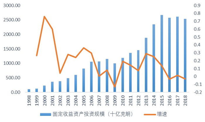 从投资规模及增速来看,近年来固定收益类资产的增速在不断下滑,2016及2018年均出现了负增长。