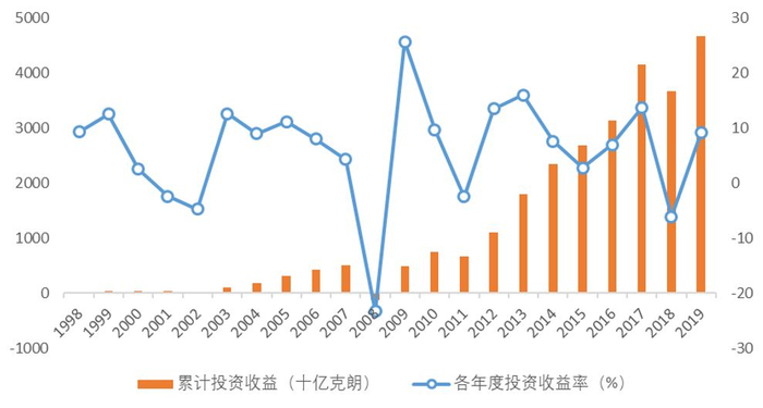 图8 GPFG各年度投资收益率及累计投资收益情况