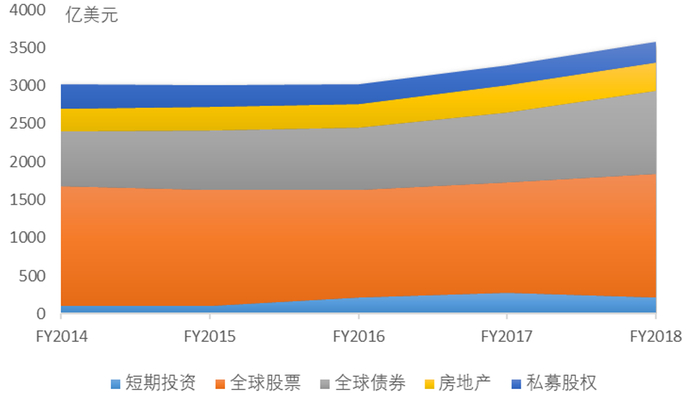 截至2018财年[6],PERF资产管理规模为3540亿美元,近两年规模增速维持在8%左右。PERF资产主要来源是雇主和员工的退休金和投资收益,从近五年数据来看,规模的增长绝大部分来源于投资收益。