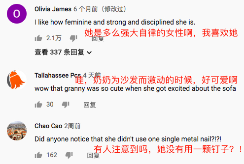 她发了一个自制竹沙发的视频,视频下面就成了这样。